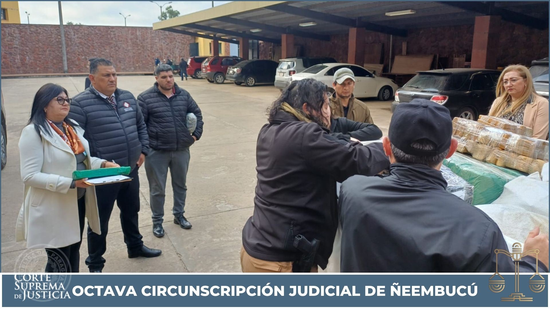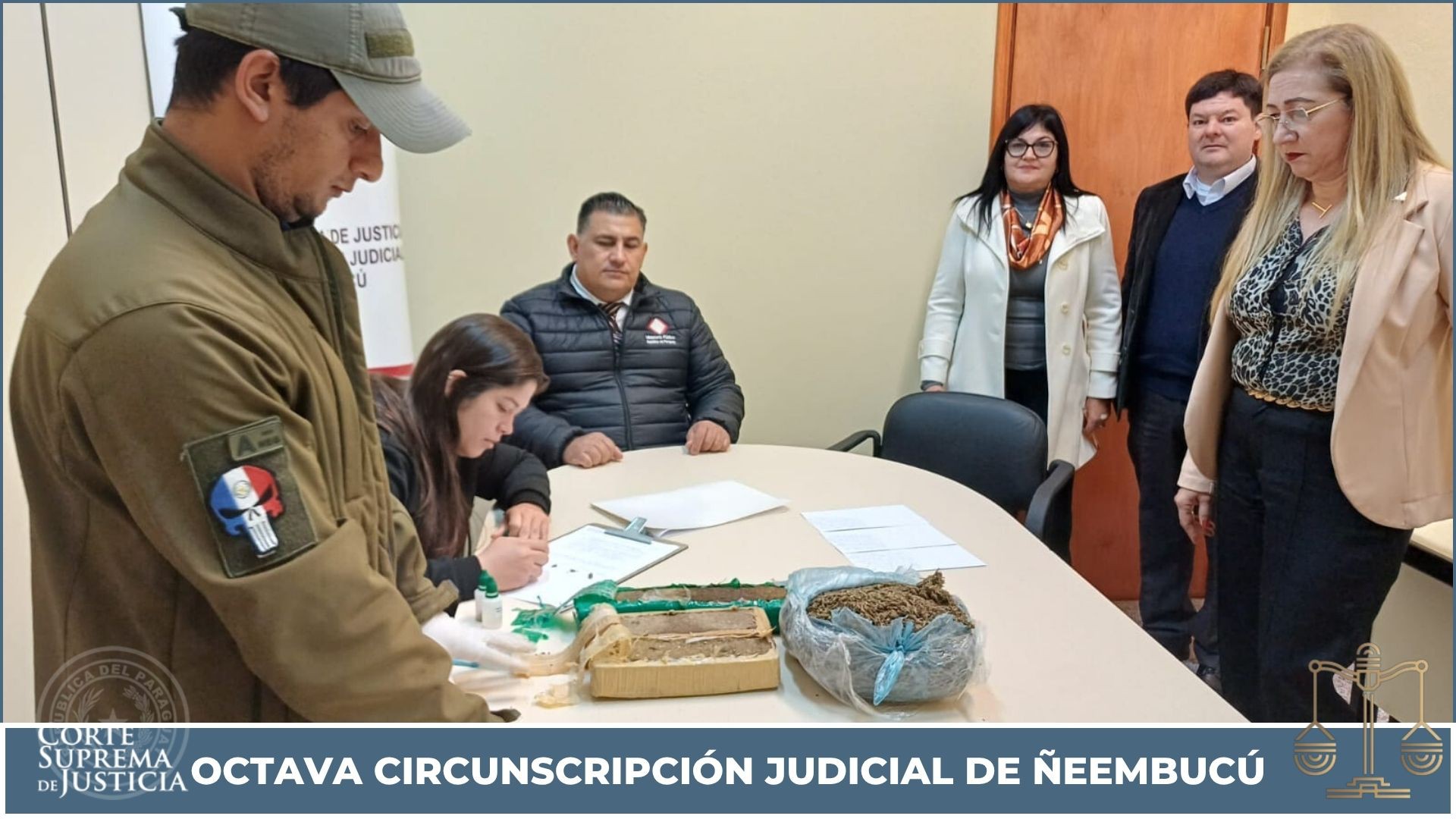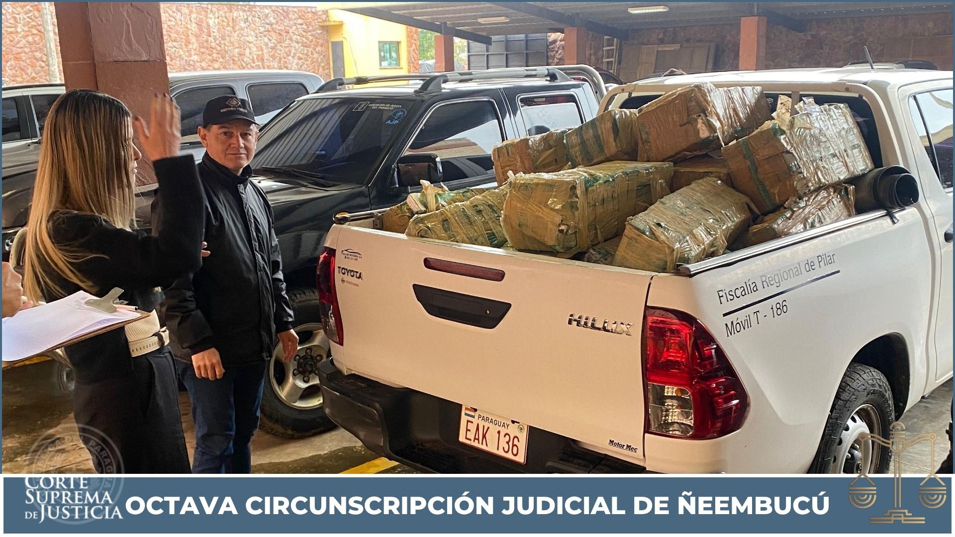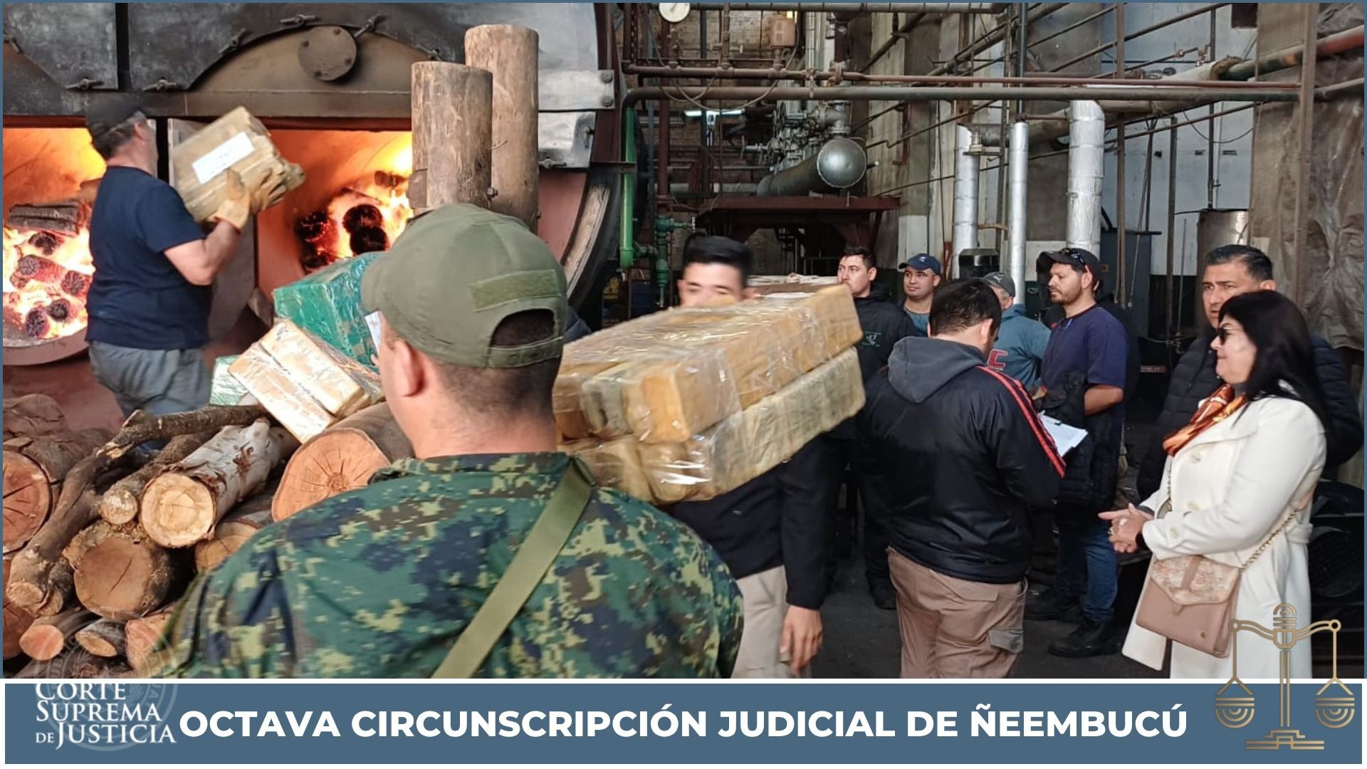 El primer procedimiento se llevó a cabo en la víspera por disposición del Juzgado Penal de Garantías del Primer Turno de Pilar, a cargo de la magistrada Juliana Paredes Vignoli. El actuario Sergio Antonio Insfrán oficializó el acto, que contó con la presencia del fiscal de la Unidad Especializada en la Lucha contra el Narcotráfico, Milciades Ramos, y el defensor público Abg. Ariel Encina. Mediante el Auto Interlocutorio N.º 416, se autorizó la destrucción de 640 kilogramos de marihuana incautada.