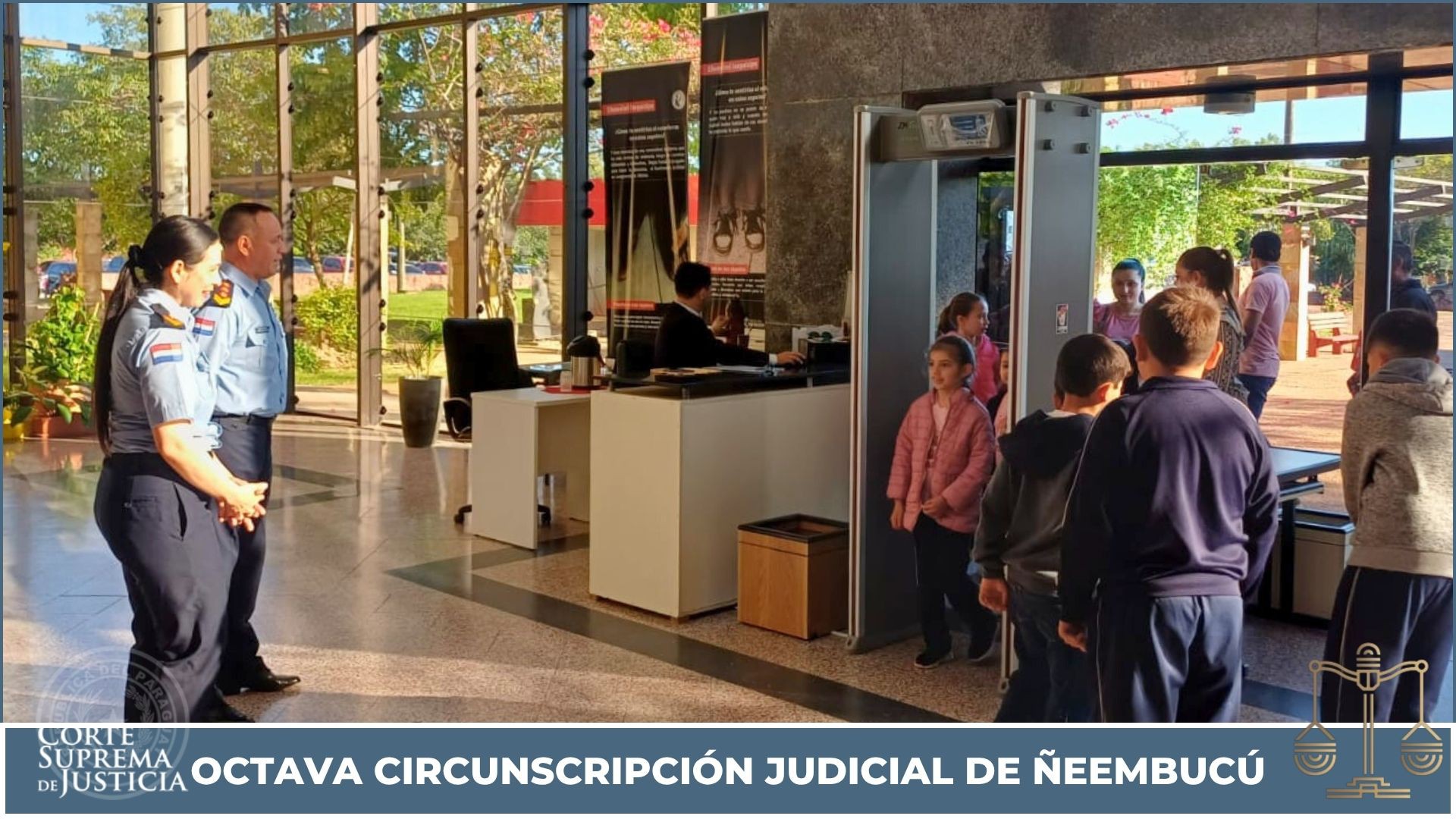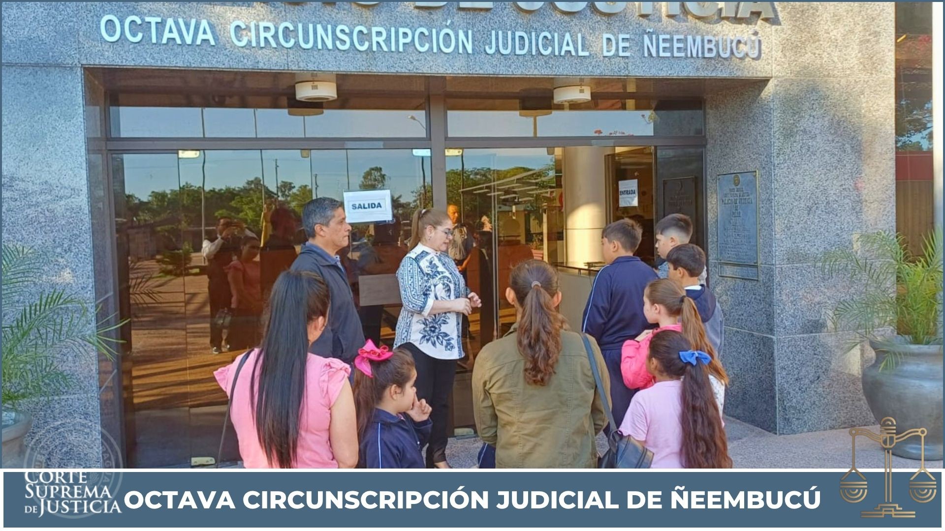 En el marco del Programa Educando en Justicia, alumnos/as de la Escuela Básica N.º 5643 “San Antonio”, de la compañía Medina del distrito de Pilar, realizaron una visita guiada al Palacio de Justicia de Pilar, con el objetivo de conocer el funcionamiento del sistema judicial y sus distintas dependencias.