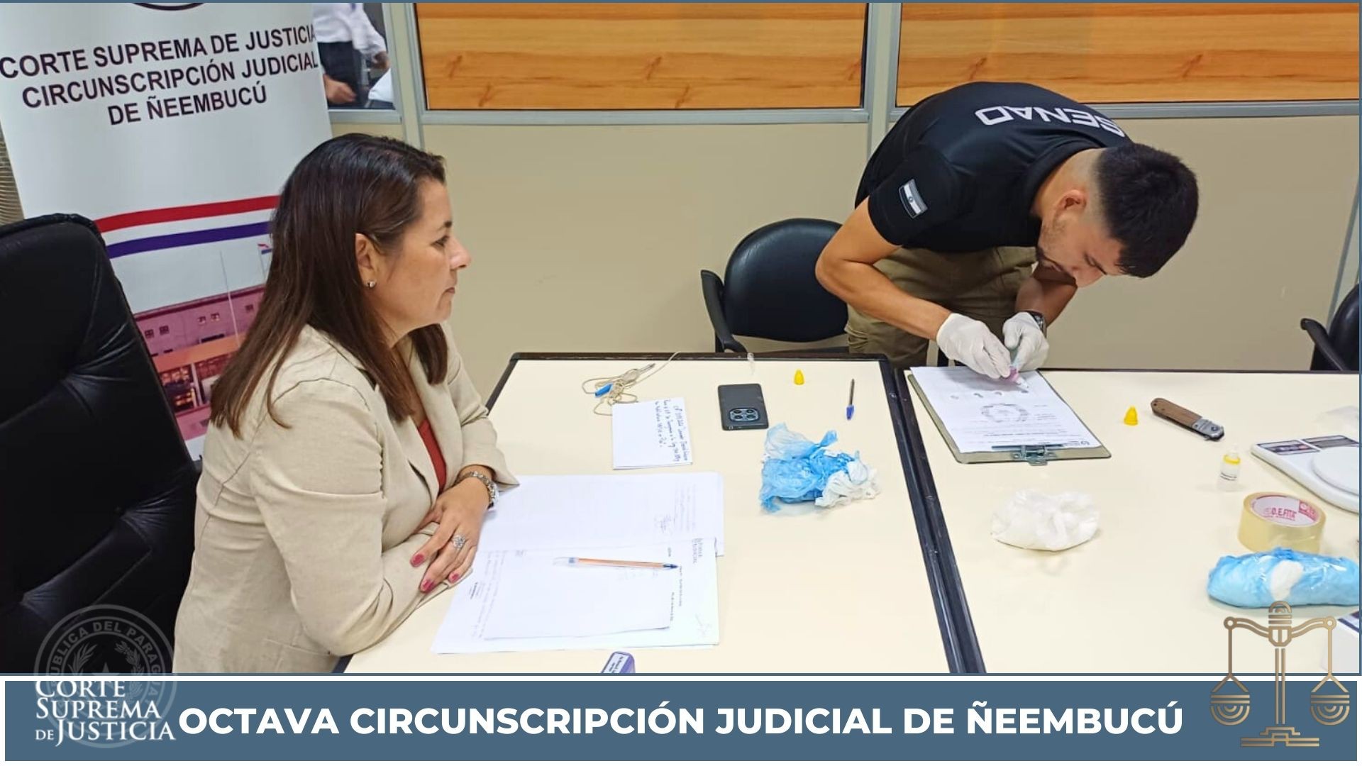 El acto fue presidido por la jueza penal de garantías, magistrada Mariana Beatriz López Silva, con la asistencia del actuario judicial Abg. Wilfrido Acosta. Asimismo, participaron el defensor público Abg. Danny Milciades Carrasco Gálvez, el agente fiscal de la Unidad Especializada de Lucha contra el Narcotráfico Abg. Milciades Rubén Ramos, y agentes especiales de la Secretaría Nacional Antidrogas (SENAD).